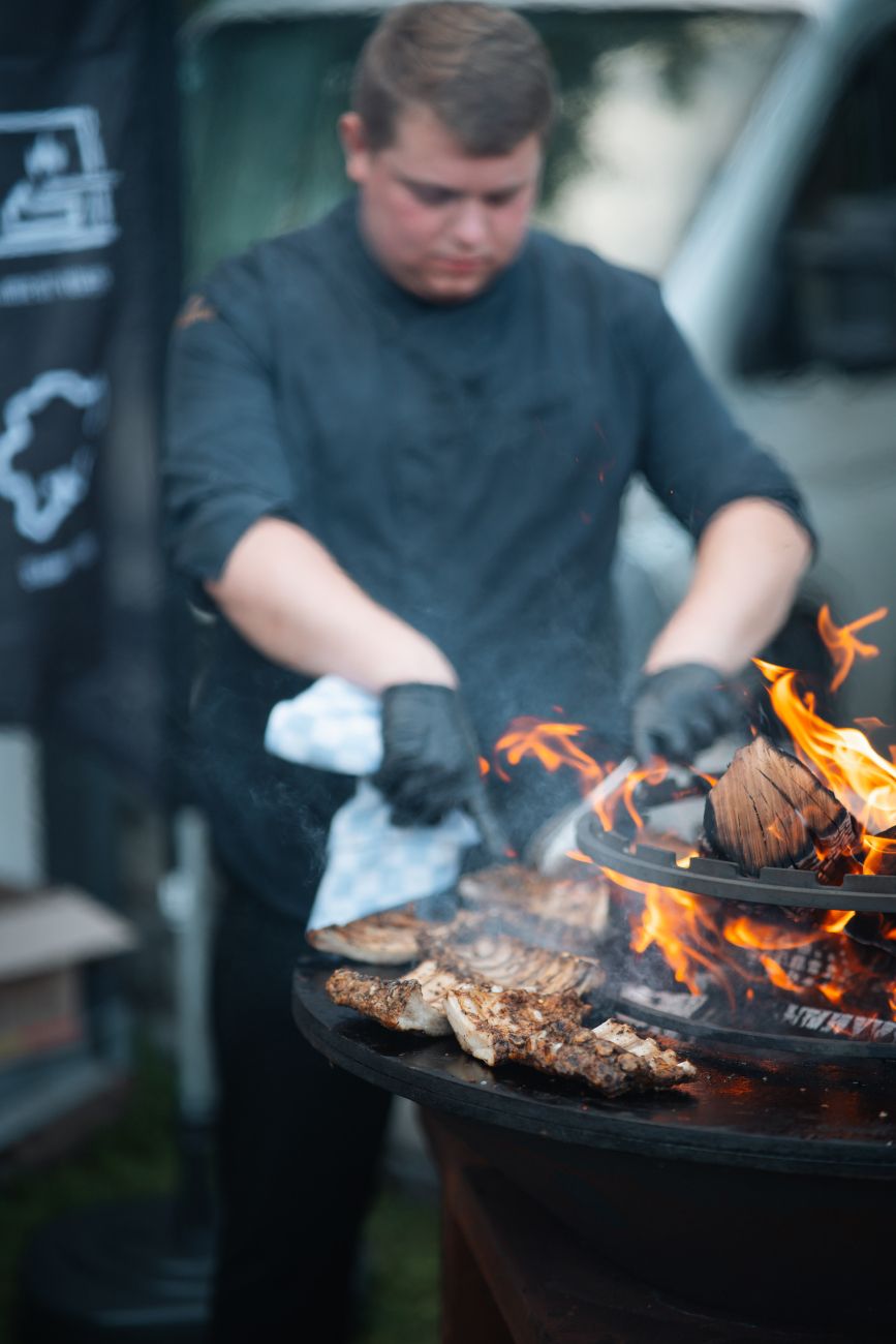 Produits cueillis sur place, cuisson au feu de bois, dîner en plein air entre convives, dans un cadre naturel sublimé, mêlant simplicité et raffinement